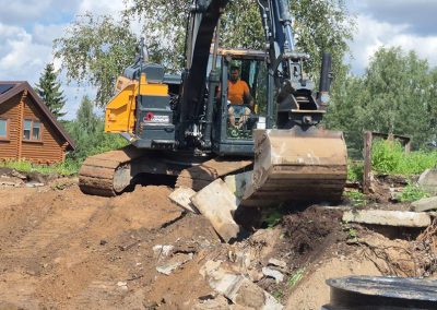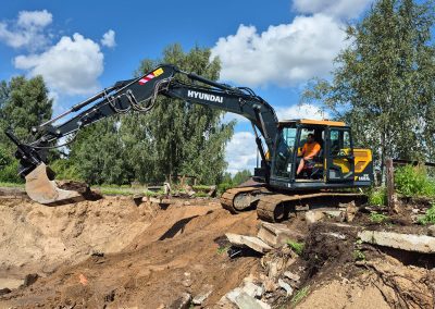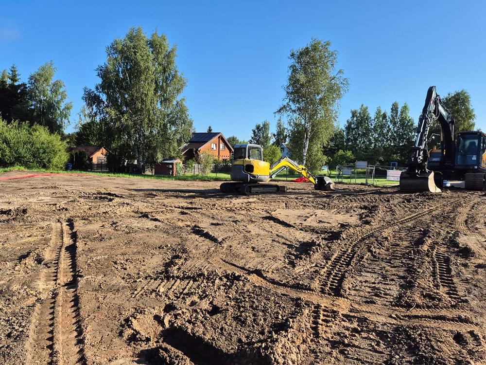 Atlikti darbai: demontuoti sena valymo sistema, nukastas gruntas, satvežtas žvyras ir skalda, padaryta aikštelė, pastatyta nauja valymo irenginių sistema ir atlikti užkasimo, lyginimo ir apdailinimo darbai.